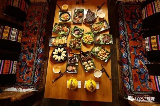 酥油茶。当称为藏族的第一饮品,是藏族人日常生活不可或缺的重要构成。酥油茶的制作方法分两个步骤,一是熬制茶汁,二是打茶。将砖茶或沱茶加水熬煮成浓汁,滤净茶叶将汁盛入茶罐备用。打茶时,从茶罐中取部分茶汁加上适量开水和盐(浓淡随自己的口味和喜好掌握),倒入专门打制酥油茶的茶桶“董莫”(mdong-mo,意为“桶”)或“槚董”(ja-mdong,意为“茶桶”)中,加入酥油,用“甲洛”搅棍(形似“雪董”的“甲洛”,只是小一些)上下打制几十回合,待水乳交融后倒入茶壶内加热,饮用时倒入茶碗。用优质新鲜酥油打制的酥油茶浓香扑鼻,味道淳厚,十分可口。藏族人的早餐其他食物可以不吃,酥油茶则必饮。有条件的人家一日三餐甚至整日都不时喝酥油茶,过去人们追求的理想生活便是每日能喝上酥油茶和青稞酒,即所谓“槚羌白玛”(ja-chang-spel-ma,意为“茶酒交替喝”)的生活,类似于今日常讲的“小康”日子。打制好的酥油茶平时盛入茶壶置于灶台上保持温热,注意不能煮沸,煮沸的酥油茶味道便大为逊色。现在在城市和有条件的农村,人们广泛使用电动搅拌机打酥油茶,用搅拌机打酥油茶不仅省力,还因搅拌速度快和次数多茶味口感更佳。有的人在打茶时还根据自己的口味在茶中添加奶粉、鸡蛋、奶渣等,这样的酥油茶更是别有风味。而打好的茶多是盛入保暖瓶中,这样饮用时方便,尤其是周末和节假日外出逛林卡时,带上几瓶打好的酥油茶十分方便。