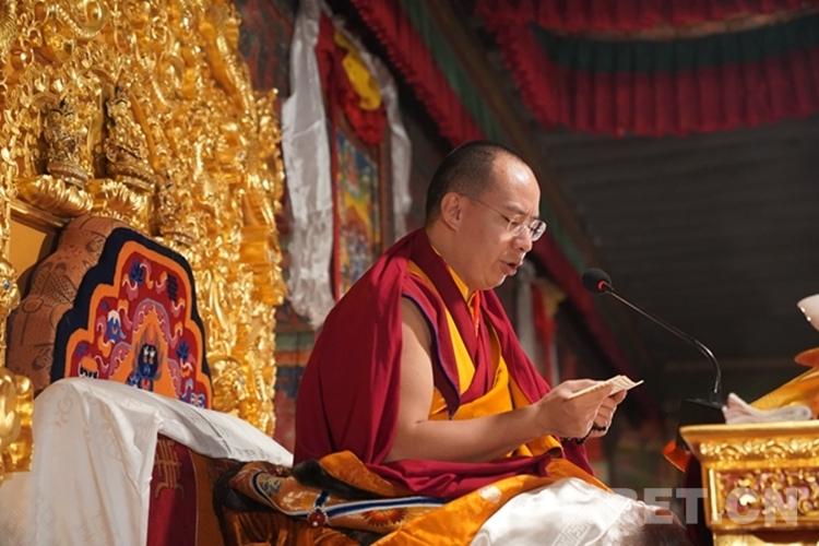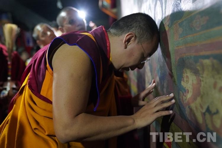 图为班禅在贡嘎曲德寺礼佛讲经 摄影:王淑