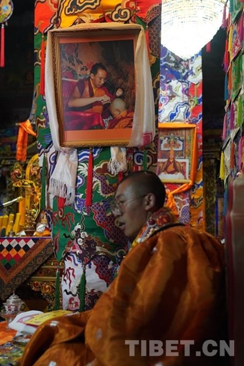 图为第六世德珠•加央西绕班旦,上方照片为班禅额尔德尼•确吉杰布为第六世德珠活佛剃度 摄影:王淑