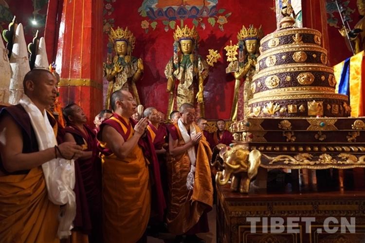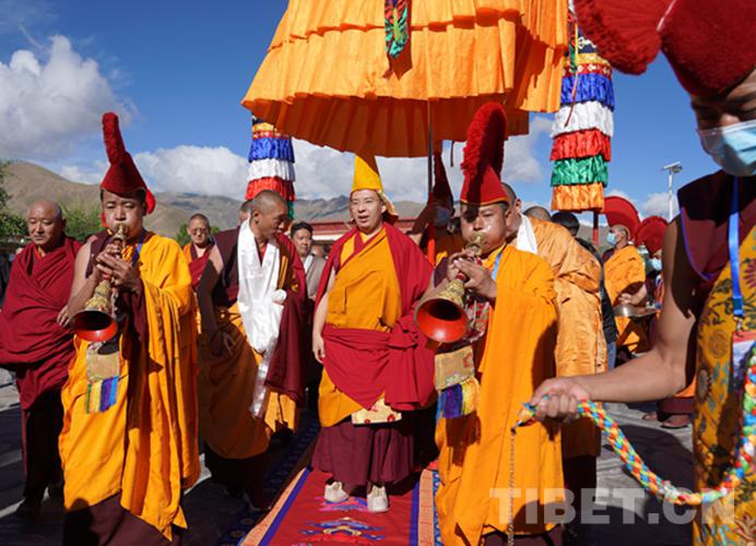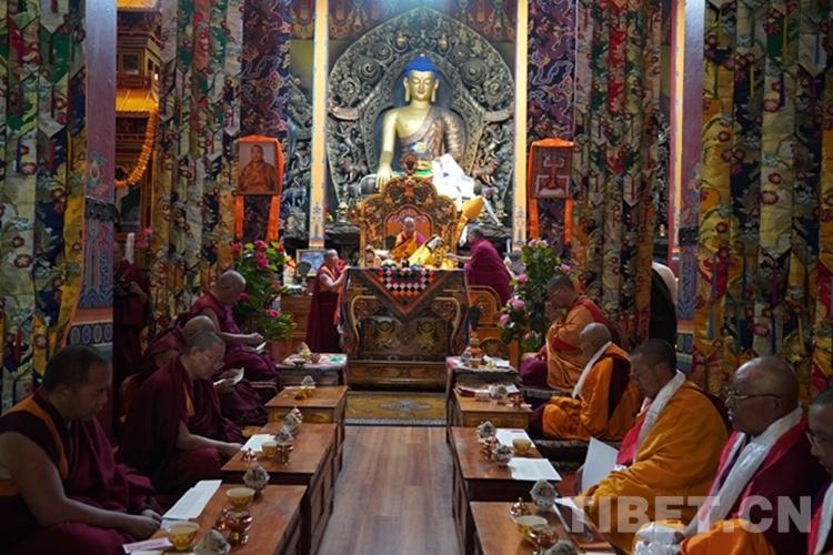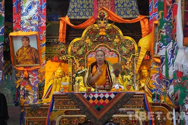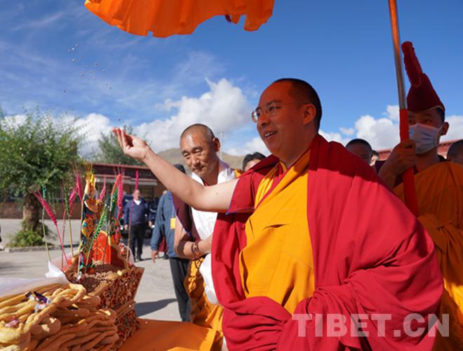 当日,全国政协常委、中国佛教协会副会长、中国佛教协会西藏分会会长班禅额尔德尼•确吉杰布前往山南市隆子县扎果寺礼佛讲经。