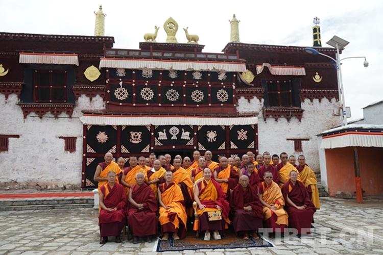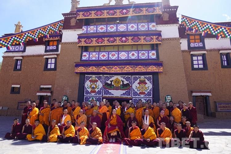 图为班禅与贡嘎曲德寺僧众合影留念 摄影:王淑
