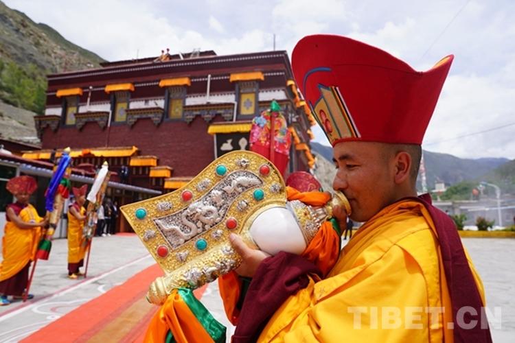 10时许,班禅抵达扎果寺。顿时,法号长鸣,鼓乐喧天,第六世德珠•加央西绕班旦活佛及僧众以最隆重的宗教礼仪欢迎班禅的到来。