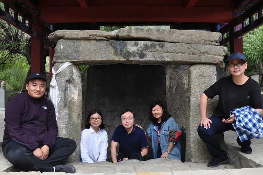 西藏早期文明史调研组全体成员在第穆萨摩崖石刻遗址