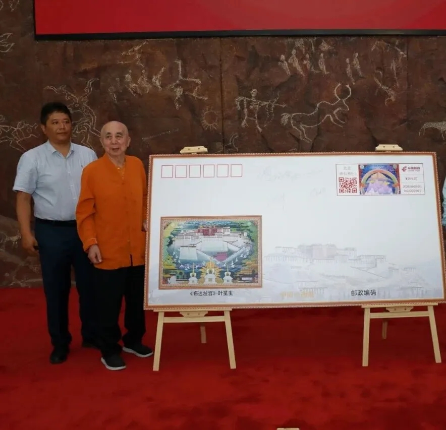 创作者叶星生在现场见证了自己作品的“邮票化”亮相。这位深耕高原艺术数十载的画家曾受邀担纲西藏自治区成立50周年和60周年纪念邮票的设计。他还是西藏发展的亲历者和见证者,自上世纪六十年代进藏以来,通过其艺术创作、民间收藏和研究工作,深刻记录和参与了西藏的发展历程。仪式尾声,叶星生与现场嘉宾共同为首日纪念封签名留念。